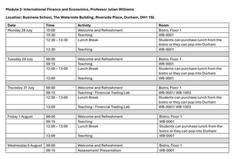 在杜伦大学严谨而开放的学术氛围中,同学们系统参与了五大前沿模块深度学习,内容覆盖金融危机与宏观政策、气候金融、医药金融经济学及网络安全等领域,由杜伦大学商学院多位知名教授联袂授课。