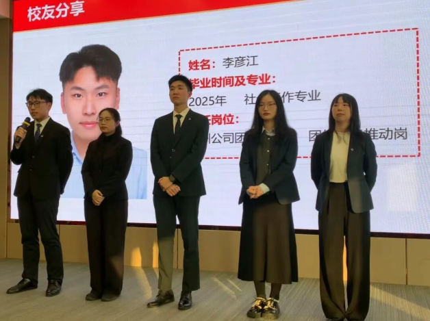 最让同学们倍感亲切的是校友分享环节。就职于新华保险的五位校友(金千千、池依曼、吴鑫荣、邹玉珏、李彦江),分享了他们在成长路上的感悟与心得。学长学姐们鼓励同学们在大学期间珍惜每一次实习与社团活动机会,主动积累经验、提升个人能力,尽早明确职业目标,为未来职业生涯筑牢基础。