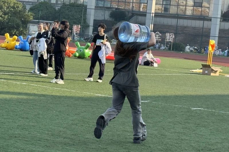 本次趣味运动会“勇挑重担”项目中,参赛队员肩扛水桶接力奔跑,于赛道上比拼速度与稳健,尽显协作魅力。泰隆金融学院的队员们分工明确、配合默契:首发者沉稳起势,交接时衔接流畅,冲刺者全力奔袭,每一环都凝聚着团队力量。他们以昂扬姿态扛好“重担”,用紧密协作攻克挑战,既展现了顽强拼搏的体育精神,更诠释了他们勇于担当、凝心聚力的青春风采。