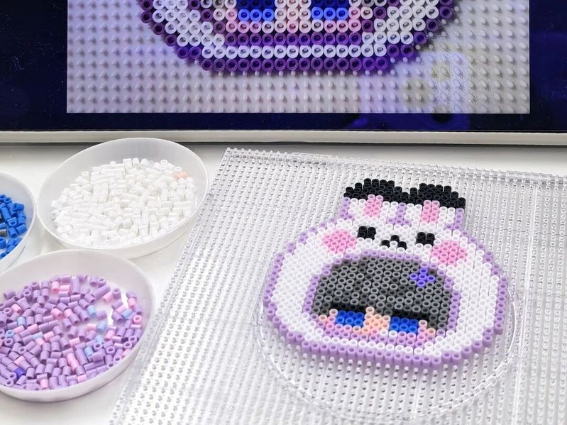 色彩缤纷的作品整齐陈列,灵动小动物、治愈卡通图案、创意几何图案各具巧思。每一颗拼豆都凝聚着同学们的专注与耐心,每幅作品都承载着减压时刻的松弛与喜悦。驻足观赏间,既能感受指尖创意的魅力,也能让这份温暖正能量在校园中悄然传递。